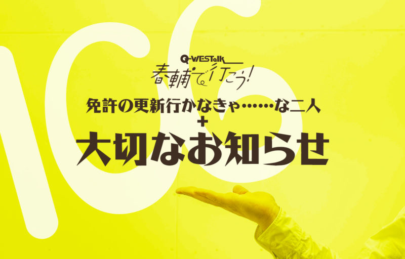 ポッドキャスト番組「Q-WESTalk 春輔で行こう!」は、関西を中心に活動するシンガーソングライター春輔が、日々起こった何気ないニュースをふんわりお届けしようという情報バラエティ番組でございます! 第106回は偶然にも今年、同時期に運転免許の更新を迎えた二人が、それにまつわるお話を…