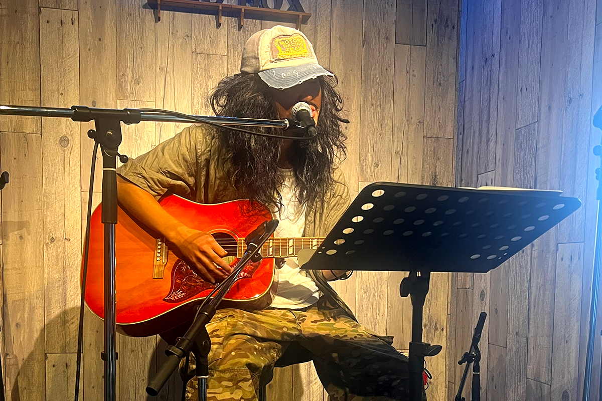 普段はキーボード、DJの2人組でのステージなんですが、この日は特別にアコギギターでの弾き語り!