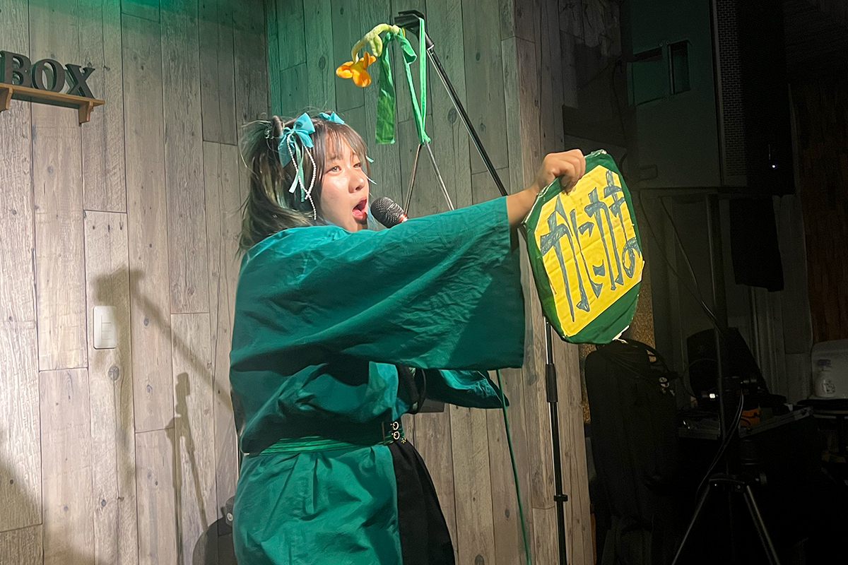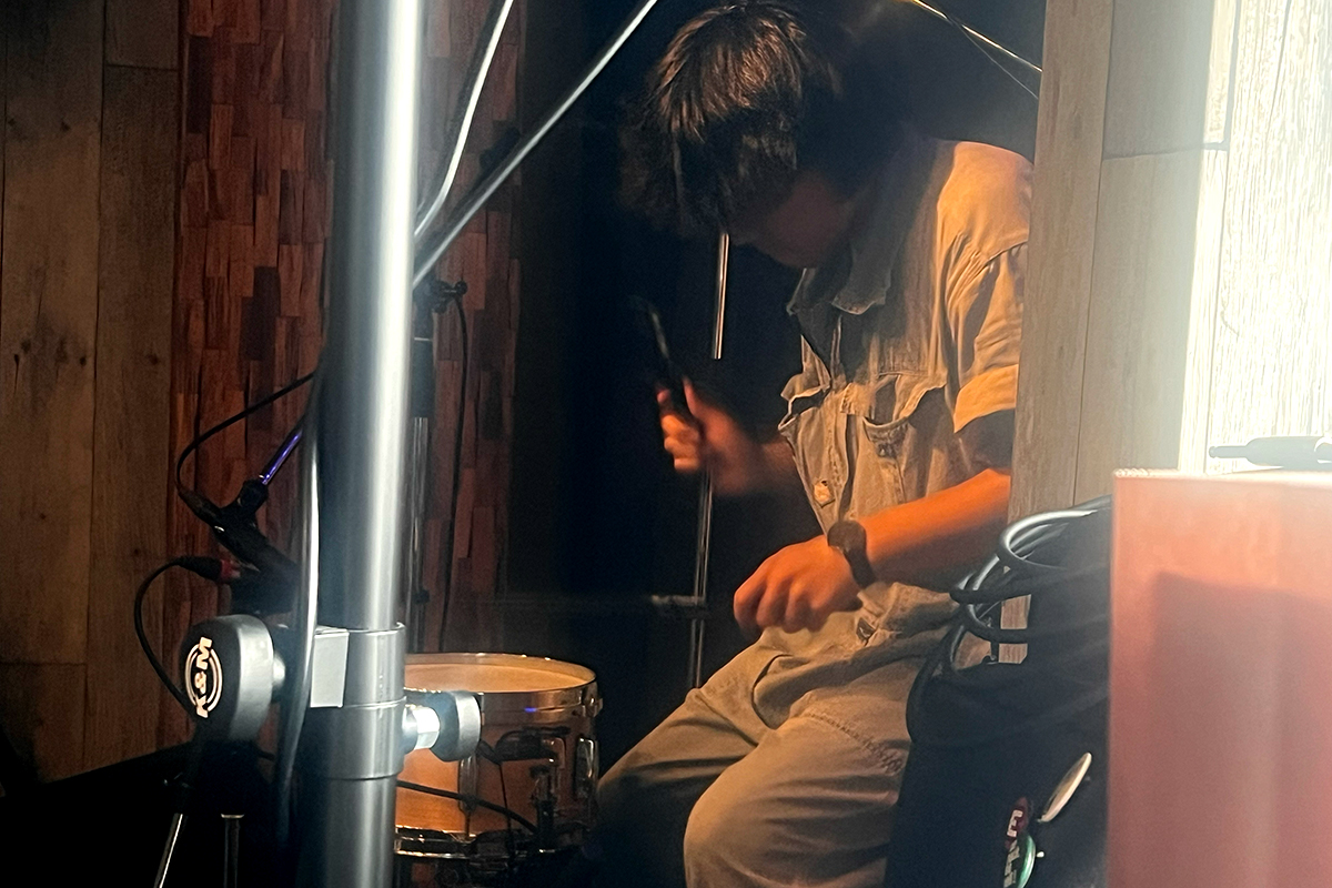 普段はドラムセットでのインストなんですが、ドラムセットが今回会場の都合上使用できず、スネアとエフェクターでのライブに挑みます! おりばーさん自身も初めての試みということで、レアなライブとなりました!