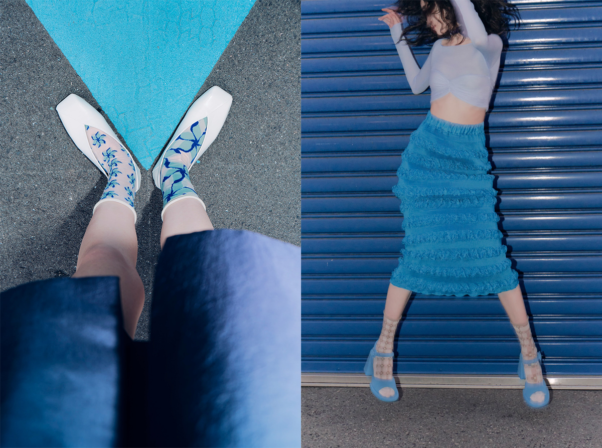 左右非対称のデザインが特徴的で、オーガニックコットンを使用。デザインに限らず素材も重視している。韓国発のブランドとして、これまで韓国での製造をメインとしていたが今シーズンより靴下の産地、奈良県で製造したシリーズも多く展開するそうだ。