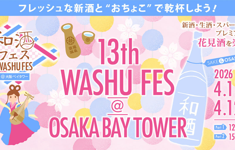 2015年の初開催以来「季節を感じながら、旬の和酒と食と日本文化を楽しむ利き酒祭り」をコンセプトに10年以上続いている「和酒フェス」。その13回目となるのが、2026年4月11日(土)・12日(日)に開催される「和酒フェス@大阪ベイタワー」だ。